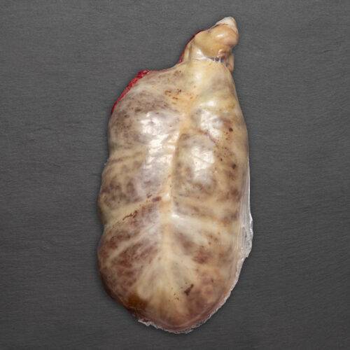 Ingredients: papada sense cotna, cor, llengüa, pulmó, carn del cap, retall gras, sal, pebre, aigua i tripa natural.