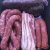 carpaccio e manetes de porc (160gr), carpaccio de galta de proc (160gr), carpaccio de cap i pota de porc (160gr), llonganissa seca (190gr), botifarra blanca culana (345gr), botifarra negra culana (345gr), bull negre (630gr), galtes de porc cuites (800gr), ampolla oli d’oliva 250ml “els vergerars”, bossa picos rústics Can Pistraques (100gr), bossa xips de verdures Can Pistraques (100gr), bossa mini xapata Can Pistraques (100gr);