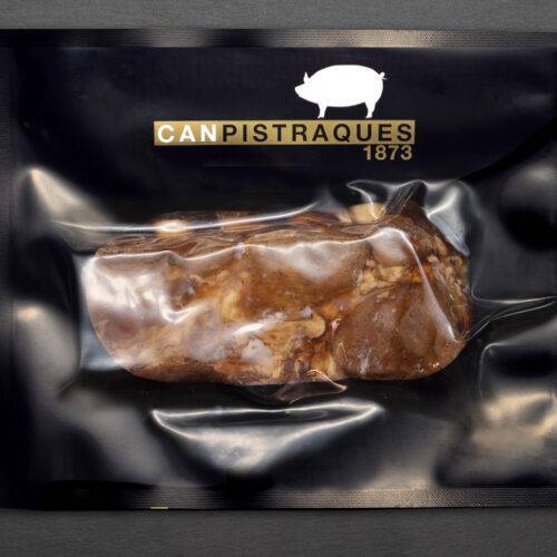 Marinated for 24 hours in soy sauce and honey taronjer and vacuum cooked at low temperature for 3 hours.