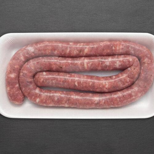 A century-old recipe of traditional sausage with pepper, fresh sausage, totally natural. Depending on the thickness, we use lamb casing or pig casing in the sausage process.